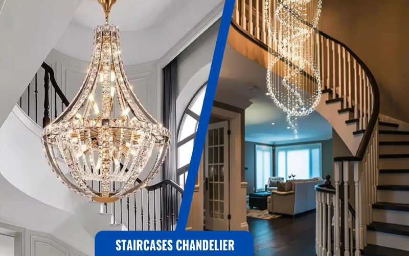 A staircase chandelier turns tall vertical spaces into statement areas, enhancing entryways and foyers.