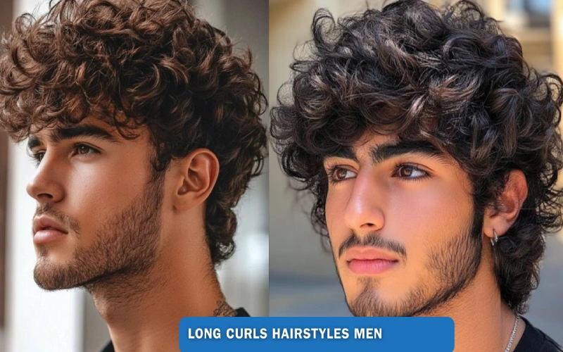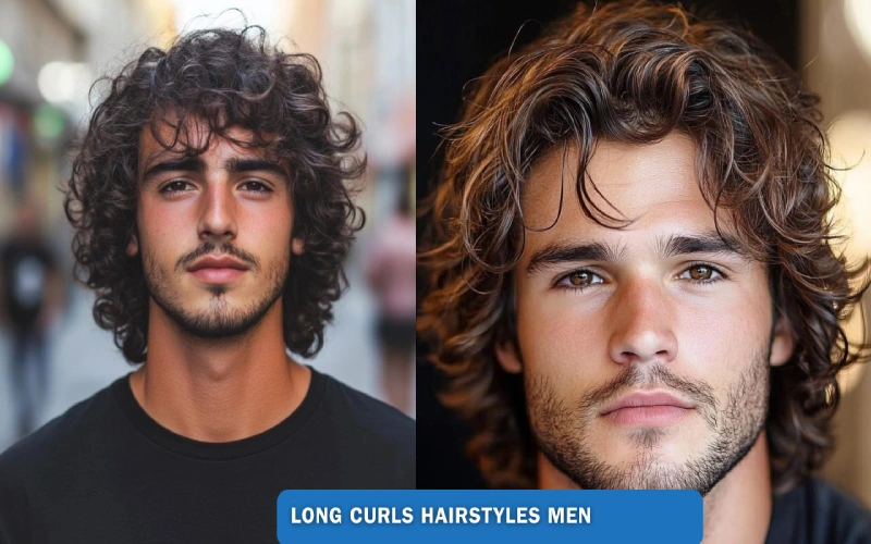 Long curly hairstyles men looks amazing with this easy style. Cut your bangs after your hair is entirely dry and your curls have developed to ensure that they fall appropriately. You won’t end up with bangs that are too short to cover your forehead if you do it this way.